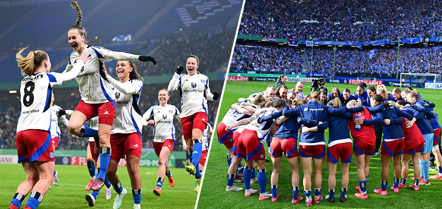 Deutlich positiver präsentiert sich der Februar für die HSV-Frauen. Zwar starten die Hamburgerinnen mit einem 1:2 in die Rückrunde der 2. Bundesliga, doch kurz darauf folgt ein Moment für die Vereinsgeschichte. Die Frauen spielen im DFB-Pokal-Viertelfinale erstmals im Volksparkstadion und das gleich vor 16.529 Fans – der größten Kulisse bei einem Heimspiel der HSV-Frauen. Das Spiel gewinnen sie mit 2:0 gegen Borussia Mönchengladbach und feiern damit der Einzug ins Halbfinale.